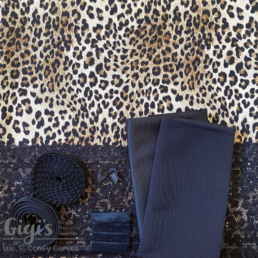 Bra Kit, Leopard and Black Full Kit includes all the fabrics and findings kits to make one bra (or up to two bras for smaller sizes).